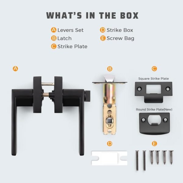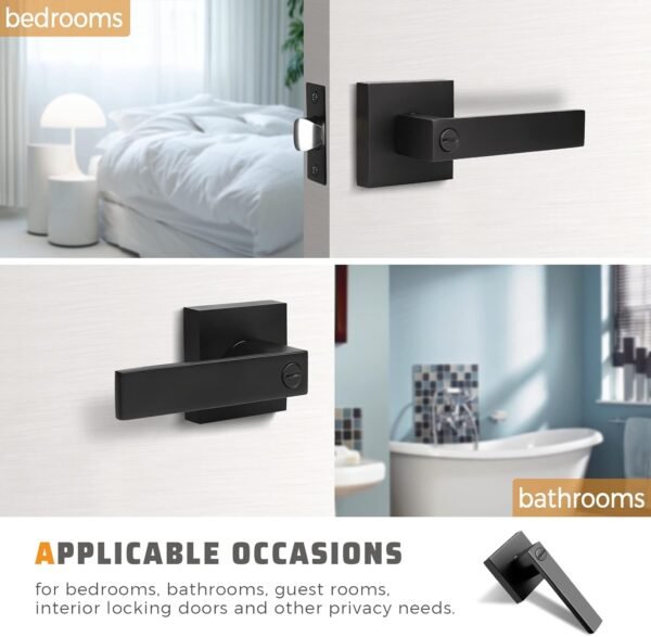 - Keyless door lever set. Suitable for bedroom, bathroom, or guestroom where personal space is needed. Can be opened from outside with a card/coin in case of an emergency.